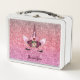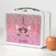 Cute Blush Pink and Burgundy Faux Glitter Ombre Monogrammed Sparkle Unicorn Princess Back to School Lunch Box. The monogram script name can be updated on this lunch box.