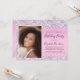 Pretty, glamourous and girly 15th birthday party invitation with sparkly holographic purple, pink and silver faux glitter confetti along the sides against a pink background, her photo, and "Birthday Party" and her name in a trendy script. You can also change the birthday year.