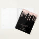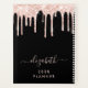 Personalised elegant and girly planner featuring pink faux glitter dripping from the top against a black background. You can add your first name in a stylish trendy light pink script with swashes.