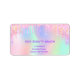 A trendy iridescent background with unicorn colours and rainbow colours in pink, purple, rose gold, mint green. Decorated with faux glitter drips in rose gold, pink and purple. Personalise and add your business name and address. Perfect for a makup and nail artists hair stylist, beauty salon, female entrepreneur.