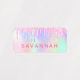 A trendy rainbow colored, iridescent background with unicorn and rainbow pastel colors in pink, purple, rose gold, mint green. Decorated with faux glitter drips in rose gold, pink and purple. Personalize and add a name and a phone number, written with a girly modern hand lettered style script. Pink colored letters.