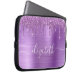Monogrammed chic and girly laptop sleeve featuring purple faux glitter drips on a purple faux brushed metallic background. Personalise with your name in a stylish trendy white script with swashes.