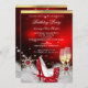 Glitter Red High Heel Shoes, Silver Gold Champagne Birthday Party Invitation. Elegant Red Silver, gold. Customise with your own details and age. Template for Sweet 16, 16th, Quinceanera 15th, 18th, 20th, 21st, 30th, 40th, 50th, 60th, 70th, 80th, 90, 100th, Fabulous product for Adult Women, teen Girls, Zizzago created this design PLEASE NOTE all flat images! They Do NOT have real Glitter, Diamonds Jewels or real Bows!!