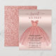 Featuring a pretty blush pink dress and faux rose gold glitter with modern script and popular typography, this birthday invitation is perfect for a princess celebrating her sweet 16th birthday.