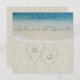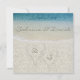 Destination Wedding - Beach - Glitter Sandy Beach Wedding Invitation - Two hand drawn hearts appear to be written in the sand- inside personalised monograms- the sand is glitter - soft foamy tide from the ocean just touching the beach - romantic and casual. NO real glitter is used on this product, it is artistically created to look real.