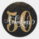 Glitter & Script 50 & Fabulous on Black, Birthday Classic Round Sticker