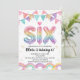 Glitter SIX Girly Rainbow Sequin 6th Birthday Invitation