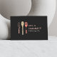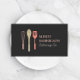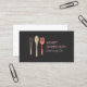 A trio of common kitchen utensils along with your name or company name makes the perfect logo on this customisable business card for a catering company, bakery, restaurant, personal chef, baked goods, food stand, or any food-based business. The spoon is filled with an image of gold glitter for added pop. Art and design © 1201AM CREATIVE
