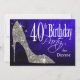 Glitter Stiletto Zebra 40th Birthday blue silver Invitation