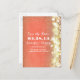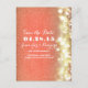 Vintage yet modern save the date postcard with glitter confetti and string lights - gold and peach postcard