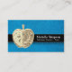 This sparkly business card for substitute teachers features granny smith apple embellishments. Fully customisable and perfect for preschool teachers, professors, healthcare workers, day care workers, tutors, and even pastry chefs. Available in several glitter patterns and colour combinations.