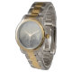 Very good quality watch that looks good whether dressing up or down. The band is sturdy. The watch is rather large so might not work for smaller folks. Recommended as a good gift. Printing is just a touch light but adds a nice touch of personalization.