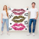 Glitter typography print with lips pattern fleece blanket