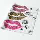 Glitter typography print with lips pattern wrapping paper