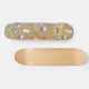 Glitter unicorn skateboard. Gold glitter background and unicorn pattern skateboard.