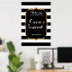 Welcome your wedding guests with this beautiful wedding welcome poster! Black and white stripes, with a gold glitter frame. Text, text colour, and font are completely customisable to create the perfect sign for your wedding. ©Vanilla Lagoon 2016.