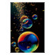 A digital illustration of glittering bubbles with a black background. Spectrum colouring.