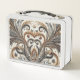 This is a standard metal lunchbox that appears to work just fine. We designed this box ourselves with an uploaded photo and custom text on the front and back. It looks absolutely beautiful except the front of the lunchbox is not centered like it shows in the photo. The print borders don't align with the inset flat part of the box where the preview photo online showed it perfectly centered in there. The back looks nice and centered though.