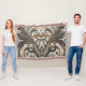 A beautiful small blanket that is perfect for covering your legs while curled up in  front of the fire, or for a decorative touch on the sofa.  We also think it looks brilliant as a Christmas table centerpiece.  We are delighted with it. The colors are absolutely perfect.  Vibrant yet traditional.  The pattern retains its lovely details despite the texture of the fabric.  Very classy product that will not disappoint as a gift.