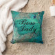 Glittery Aqua Paint Strokes Lady Boss Cushion