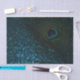 Stunning peacock feather still life photography. The peacock feather looks brilliant against the glittery aqua blue background.