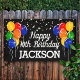 A super cute personalised birthday banner featuring your party theme colour balloons, and a personal message to the birthday guest of honour.
