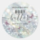 Modern elegant butterfly sparkle glittery script body butter label design.