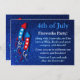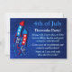 This stylish and fun fourth of July invitation has the colours of red, white and blue. It has two fireworks rocket flying up in the sky! The background has a glitter blue that is very shiny and fun.