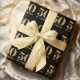 A 50 & Fabulous typography design with gold glitter and foil on black colour wrapping paper.