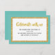This trendy insert card features bold lettering on the front with a layered look in gold glitter and white, and a solid coloured back. Add your text using the template form. Change the font, layout and colours using the Customise feature.
