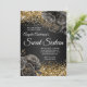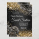 Glittery Gold Black Floral Glam Sweet Sixteen Invitation