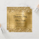 A girly glam monogrammed graduation invitation for her featuring faux sparkly gold glitter against a golden yellow brushed metal foil.