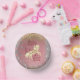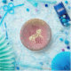 A gold shimmery unicorn where you can personalise your event on a coral pink backdrop with gold and silver glittery edging for extra magic. Whimsical magical vibes.