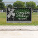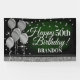 Fun banner sign for indoors or out, featuring some glam metallic balloons and glittery confetti on a rich textured deep green background for your personalised birthday banner.