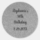 Glittery Grey Silver Custom Happy Birthday Name Classic Round Sticker