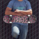 On this trendy skateboard is an ombre shaded pink glossy backdrop with a glittery silver leopard print for extra glam. Exotic glam chic vibes.