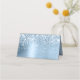 Faux light blue glitter and metallic style foil digital art, with white sparkle graphics on folded place cards for your modern wedding.