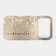 Girly faux sparkly pale gold glitter highlights on the left edge over a faux champagne platinum brushed metal foil.