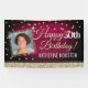 Fun banner sign for indoors or out, featuring a glitzy, glamourous glitter with a rich textured dark pink background and a photo template for your personalised birthday banner.