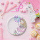 Glittery Pink Birthday Blonde Girl Unicorn Paper Plate
