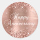 Glittery Rose Gold Foil Happy Anniversary Classic Round Sticker
