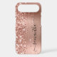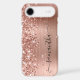 Girly faux sparkly rose gold glitter highlights on the left edge over a faux pink blush rose gold brushed metal foil.