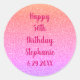Glittery Rose Gold Pink Custom Happy Birthday Name Classic Round Sticker
