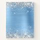 Girly faux sparkly silver glitter on the top and bottom edge, over a faux baby blue brushed metal style shiny foil.