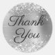 Glittery Silver Foil Black Elegant Thank You Classic Round Sticker