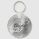 Glittery Silver Foil Fancy Monogram Key Ring