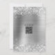 The background features a faux satin style silvery grey ombre satin foil background with faux sparkly silver glitter glam.