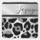 Glittery Silver Leopard Safari Print Personalised Square Sticker