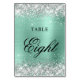 Glittery Silver Light Teal Foil Fancy Calligraphy Table Number