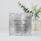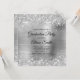 A girly glam monogrammed graduation invitation for her featuring faux sparkly silver glitter against a silvery grey brushed metal foil.